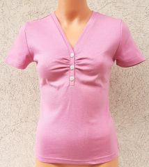 Női rövid póló gombos nyakkivágással